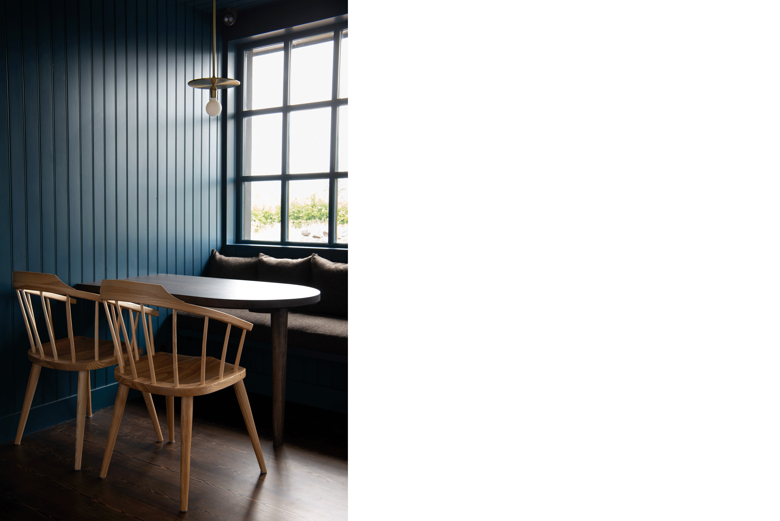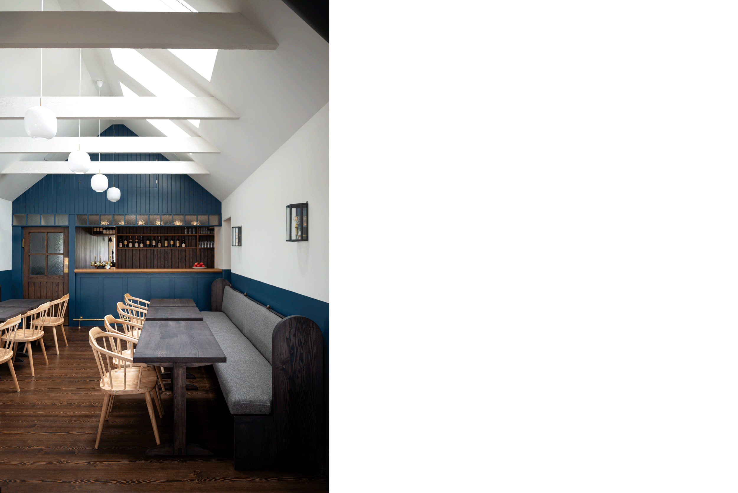 The Inn forms a key part of the Village of Kilconquhar, nestled at the centre with the church and loch. This context was carefully considered in relation to the Inn’s capacity to act as a place for gathering be it in the vaulted ‘hall like’ main space, or sheltered in the ingle nook of the high backed snug bench. Beyond the village, the Inn plays a role as a site to directly sample the local produce either grown on the Balcaskie Estate or brought in from one of fledgling producers operating out of the Bow House farmers market.